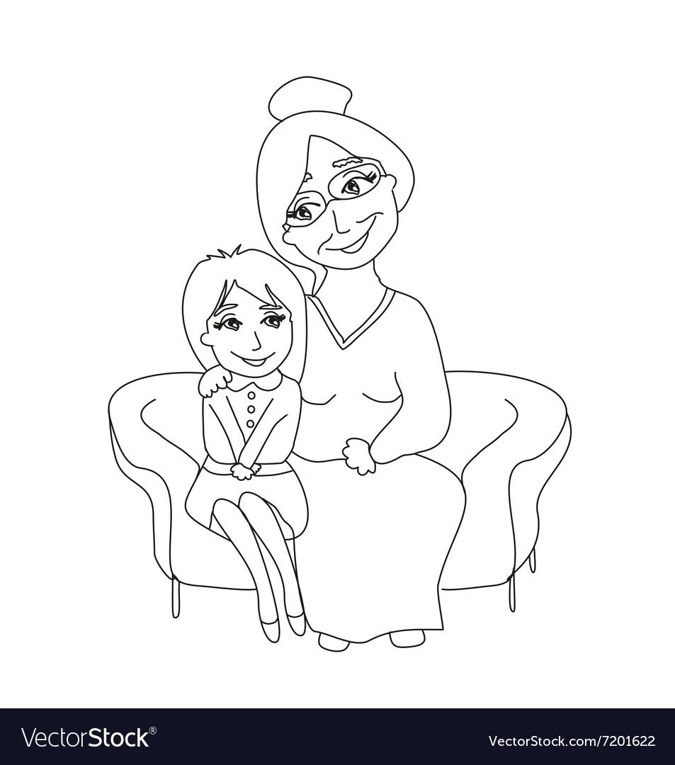 Раскраска бабушка и внучка