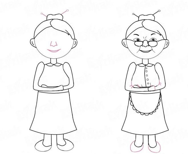 Рисование бабушки пошагово