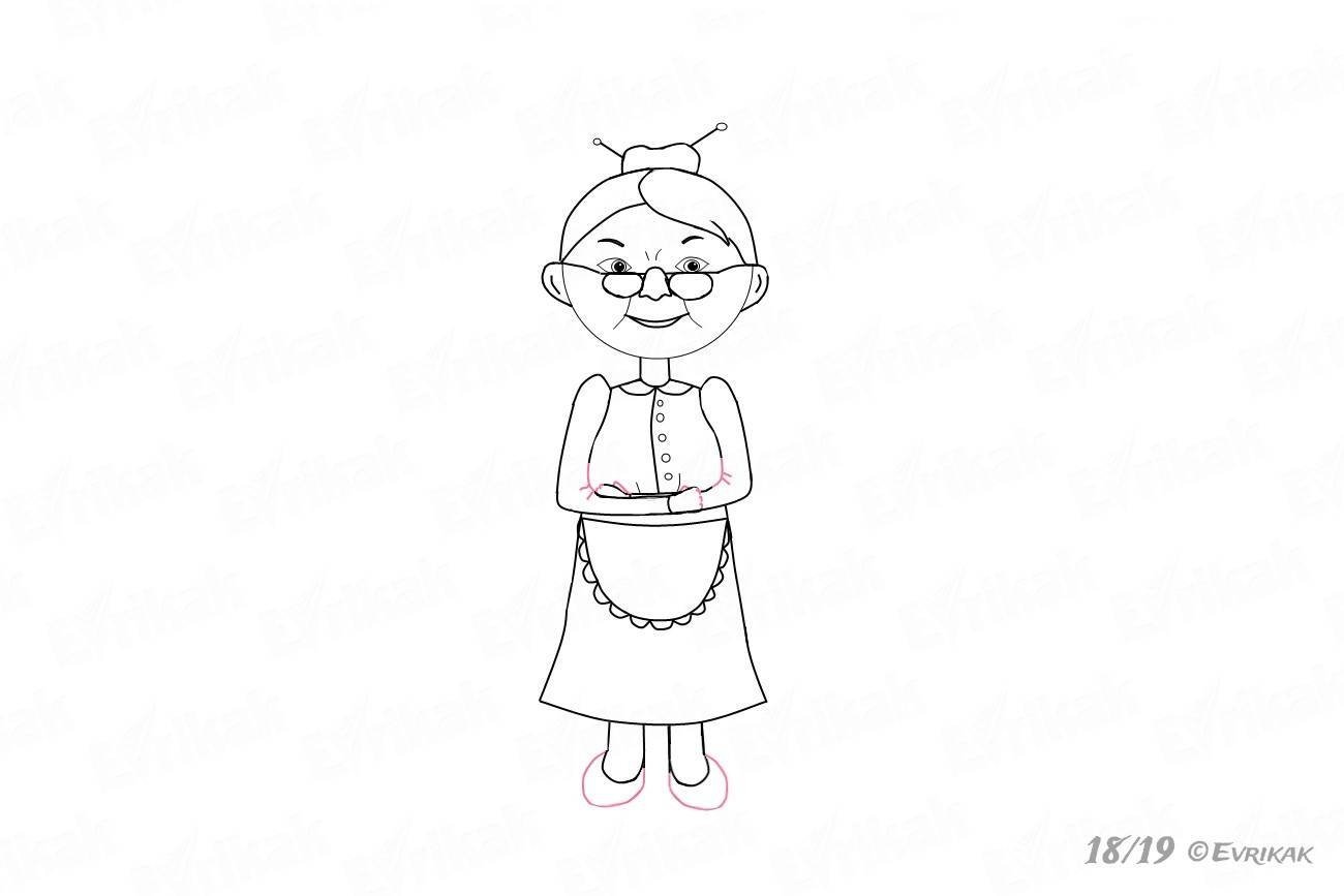 ![Рисование бабушки пошагово]()