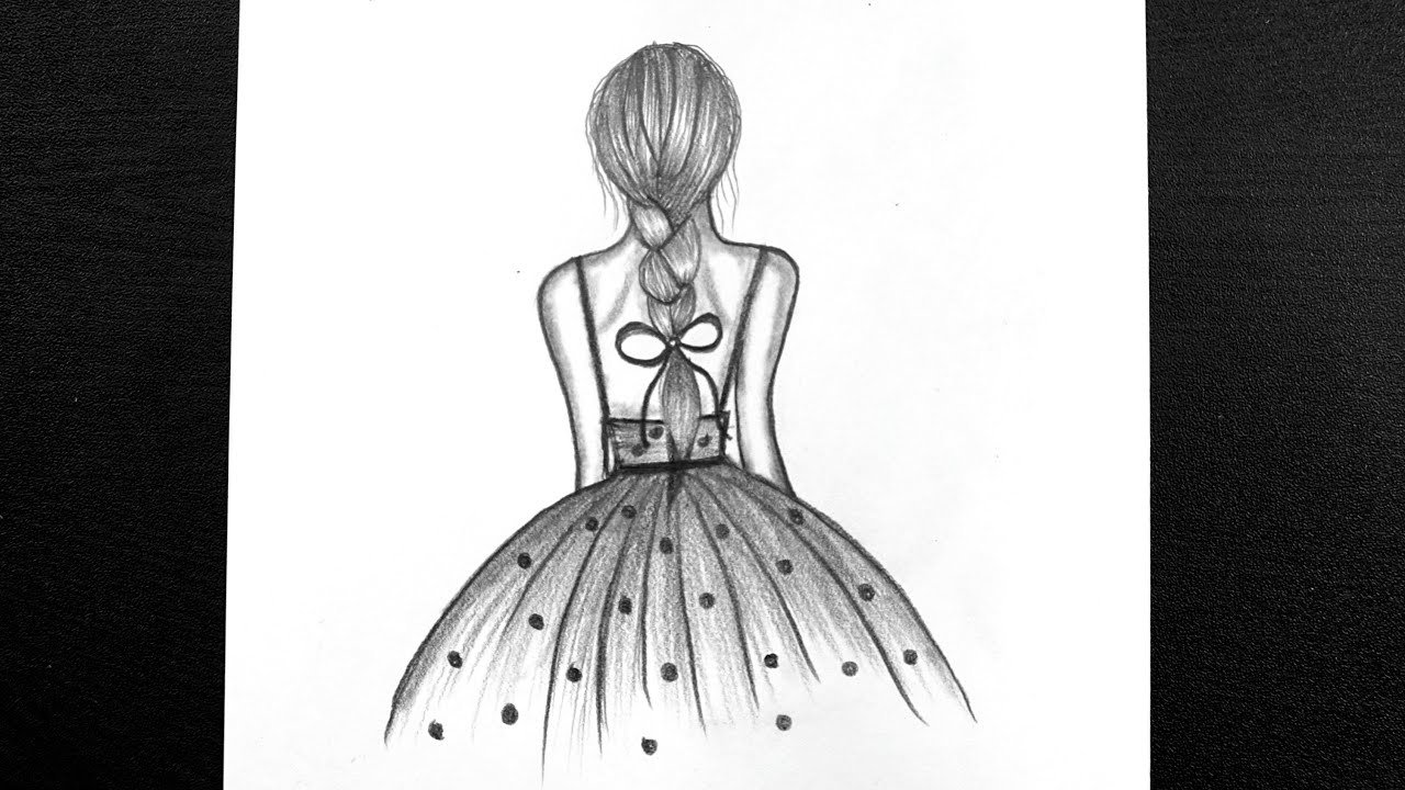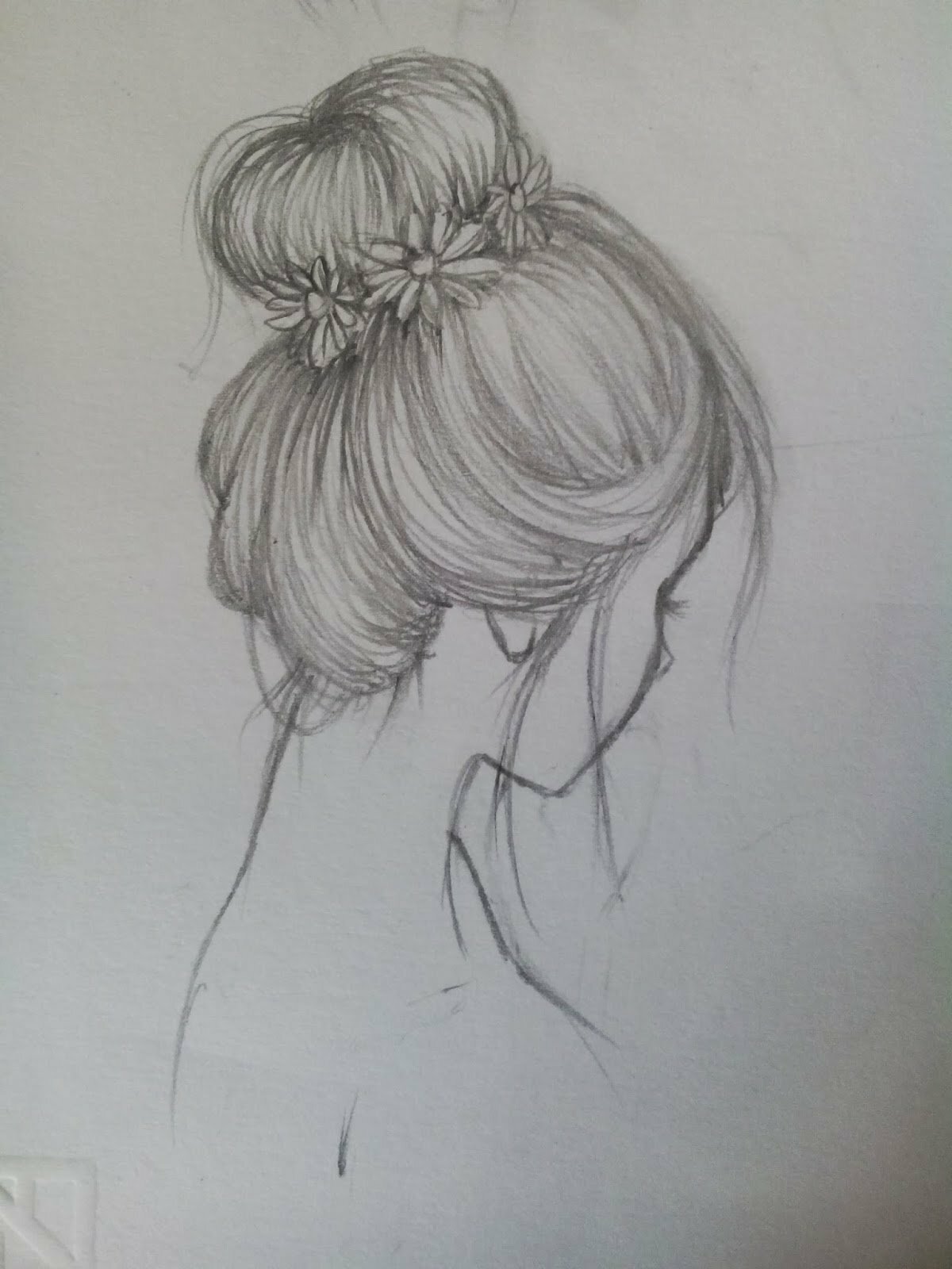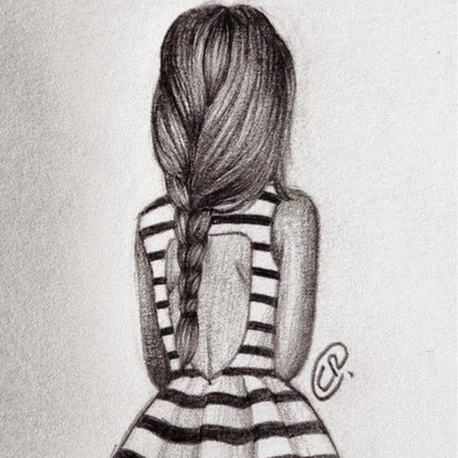 ![Девочка со спины рисунок карандашом]()
