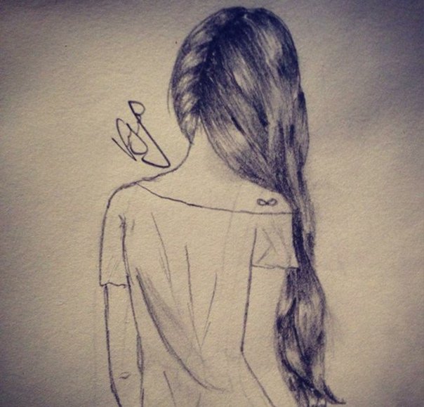 ![Срисовки девушек со спины карандашом]()