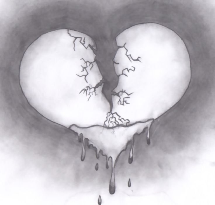 ![Разбитое сердце рисунок карандашом]()