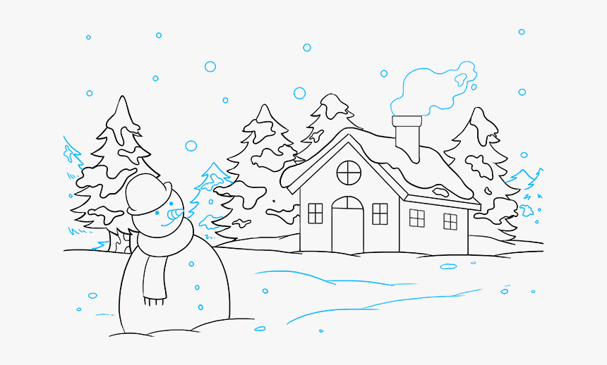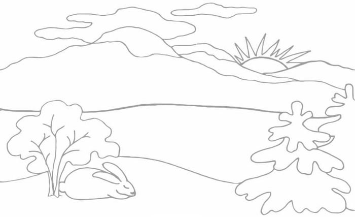 ![Зимний пейзаж для срисовывания]()