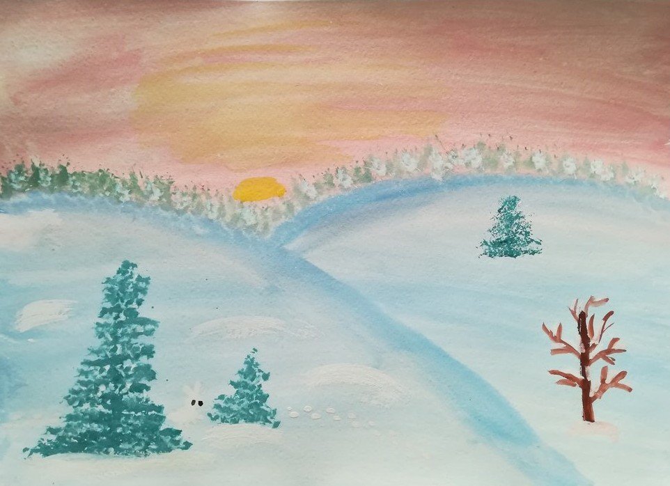 ![Зимний пейзаж пастелью для детей]()