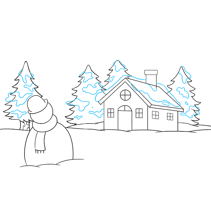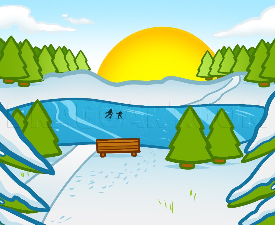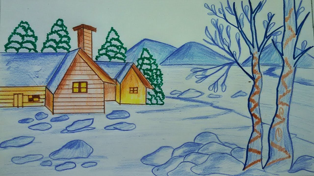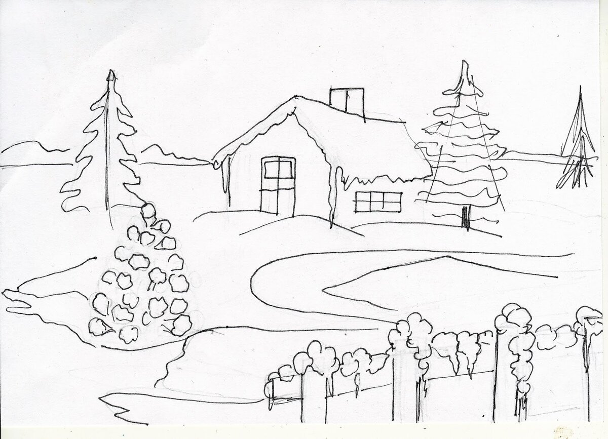 ![Зимний пейзаж легкий для срисовки]()