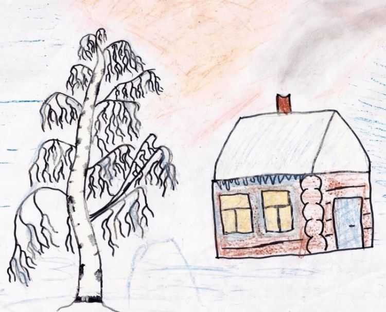 ![Детский рисунок на тему зимний пейзаж карандашом]()