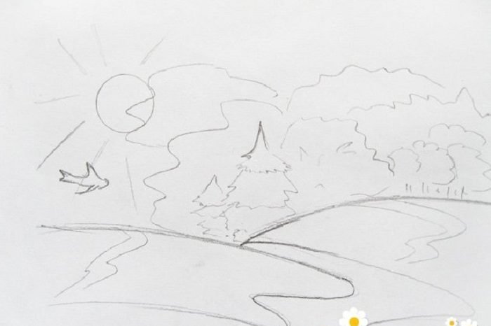 Этапы рисования пейзажа карандашом