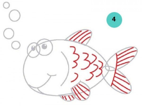 ![Этапы рисования рыбки]()
