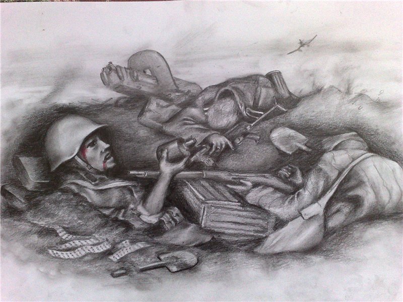 ![Рисунок на военную тему карандашом]()