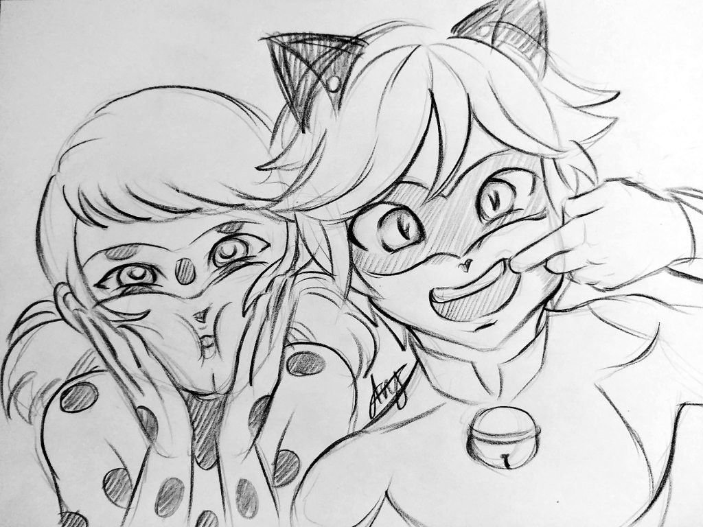 Рисунки в скетчбук карандашом леди баг и супер кот