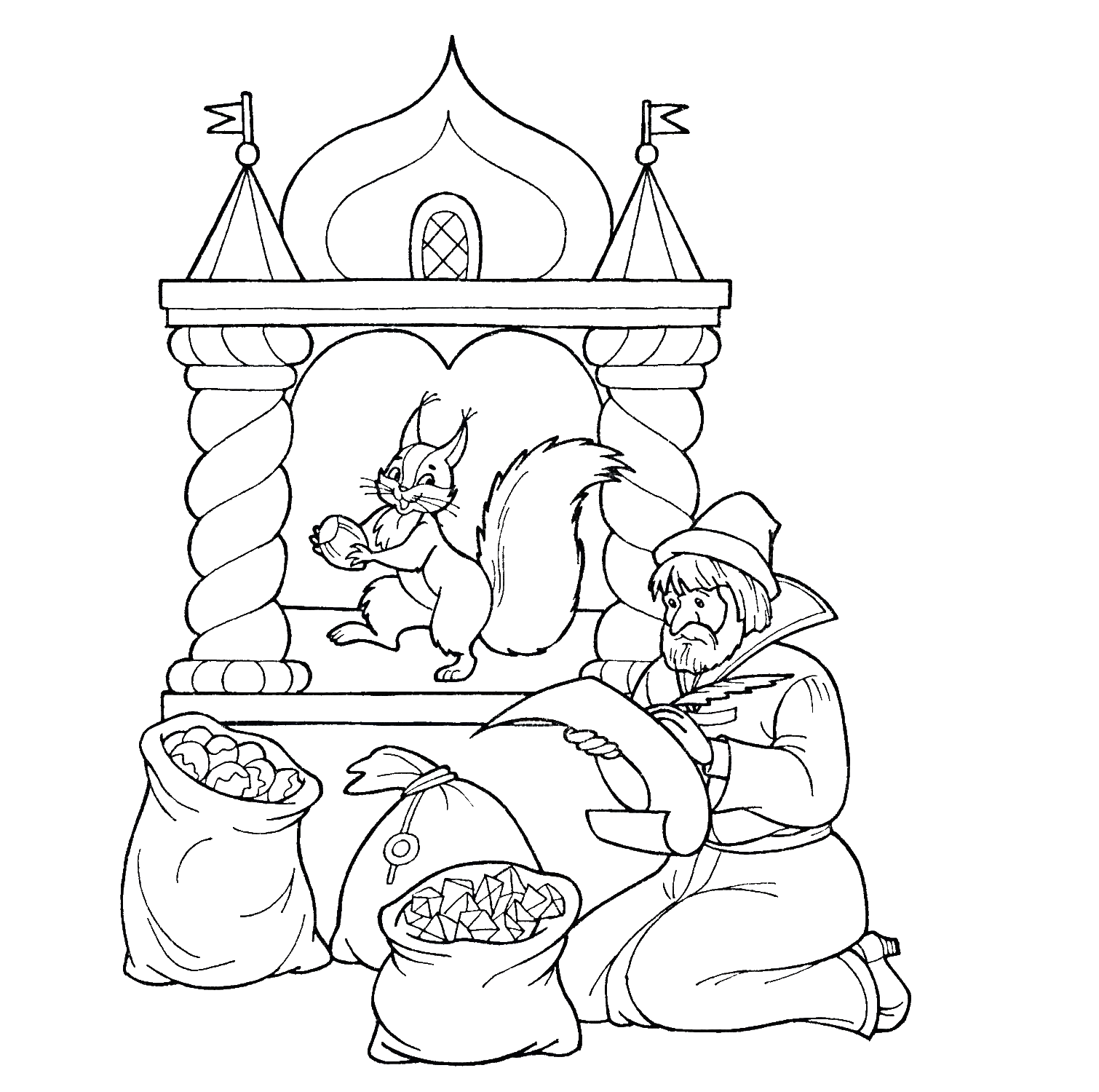 ![Белка из сказки о царе Салтане раскраска для детей]()