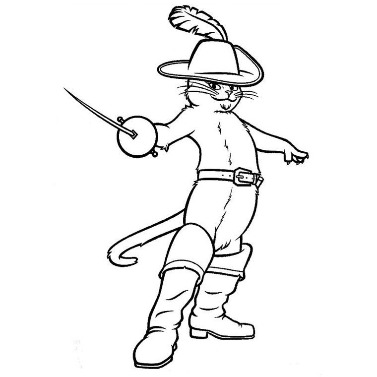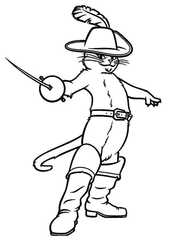 ![Кот в сапогах раскраска]()