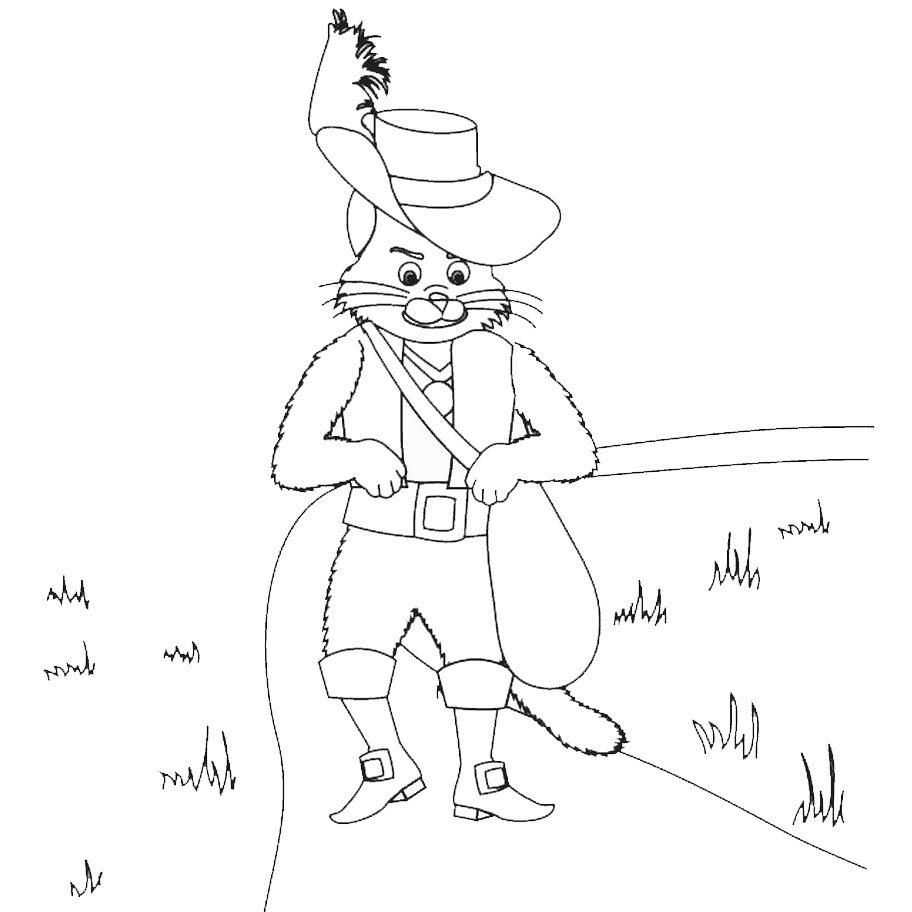 ![Раскраска кота в сапогах из сказки Шарля Перро]()