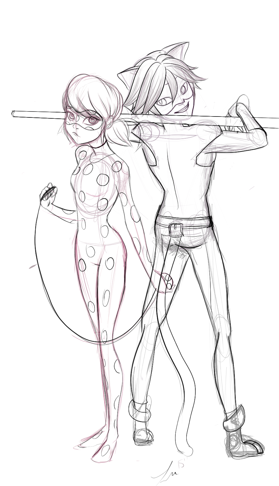 ![Эскиз леди баг в рост карандашом]()