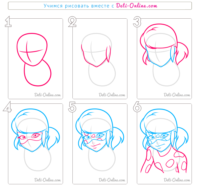 ![Леди баг рисунок пошагово]()
