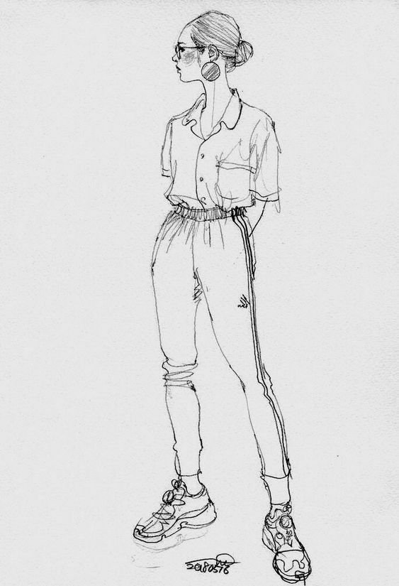 Зарисовки девушек карандашом в полный рост