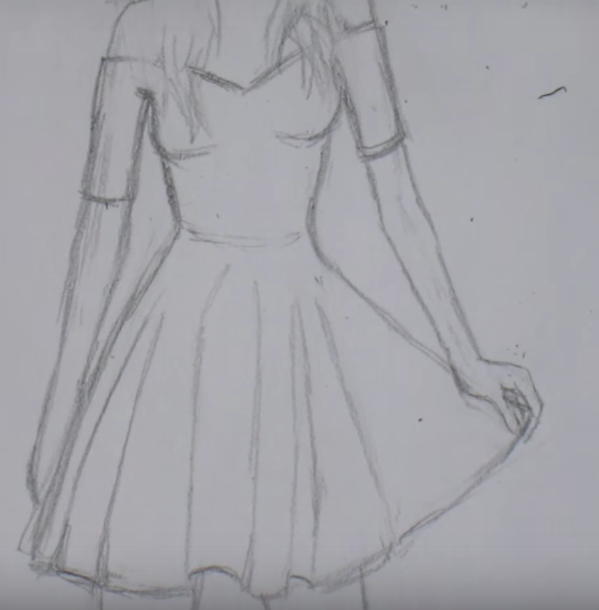 ![Рисунки девушек в платьях карандашом]()