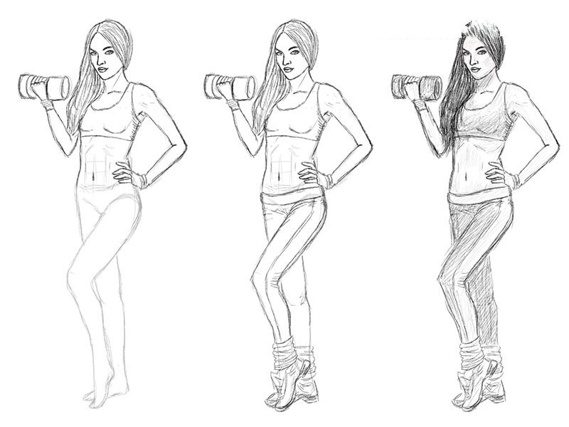 Поэтапное рисование девушки в полный рост