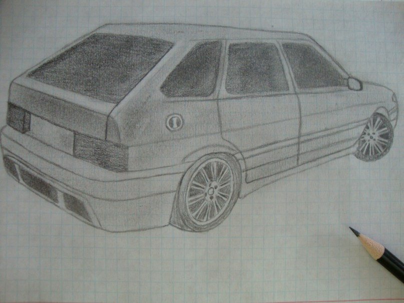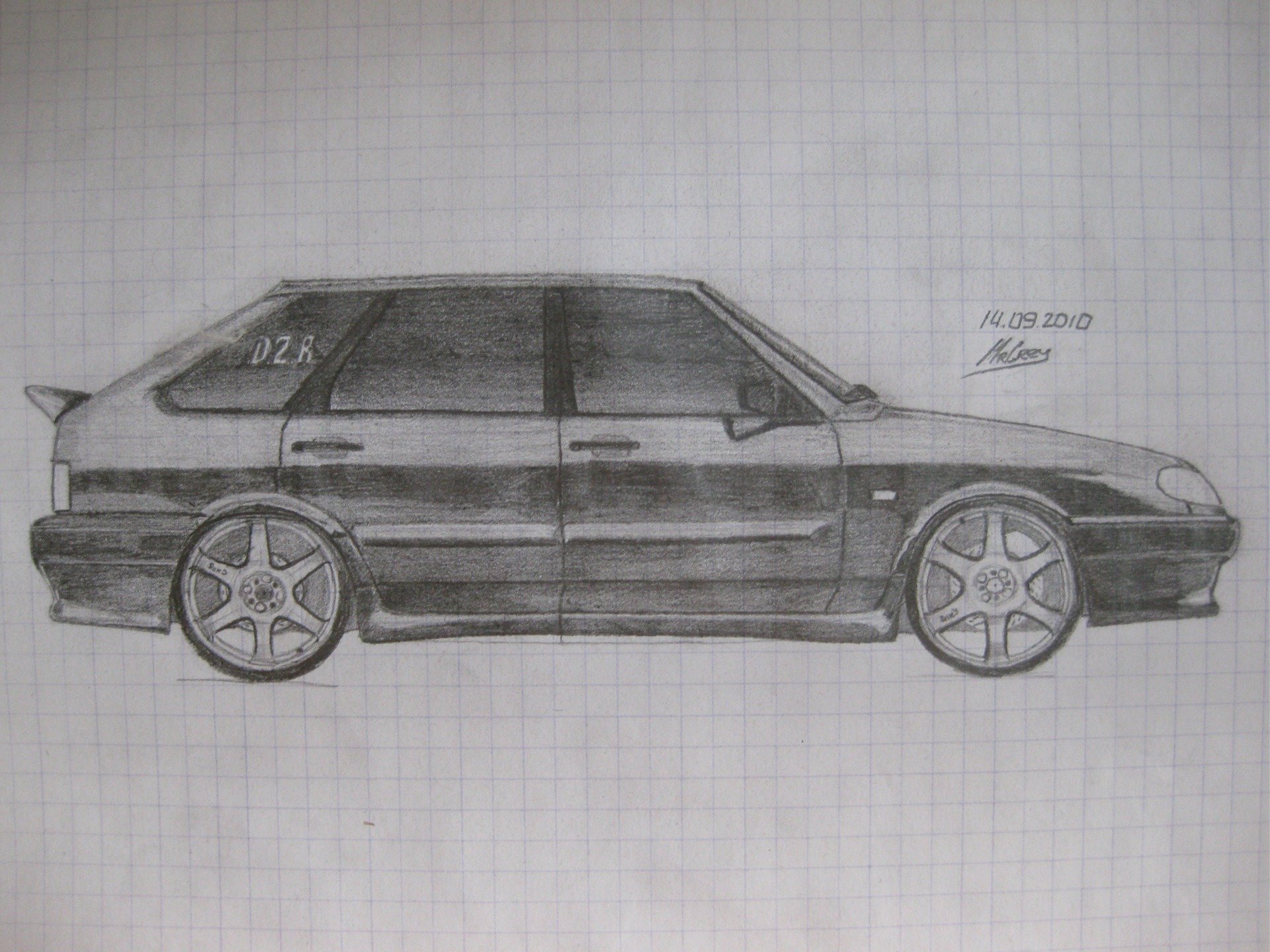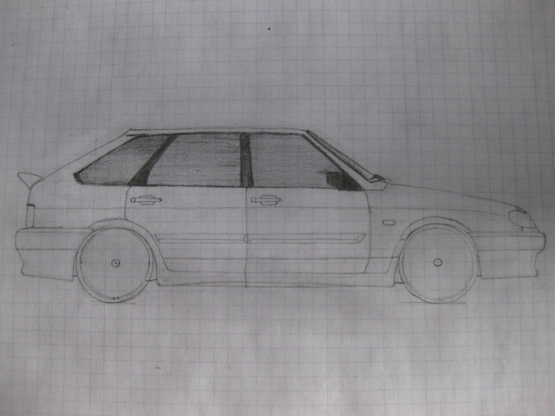 ![Рисунок ВАЗ 2115 карандашом сбоку]()
