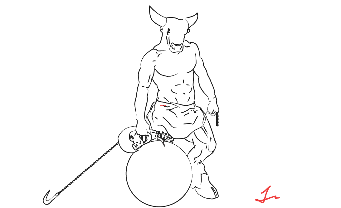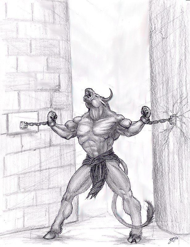 ![Иллюстрация к мифу о Тесее и Минотавре]()
