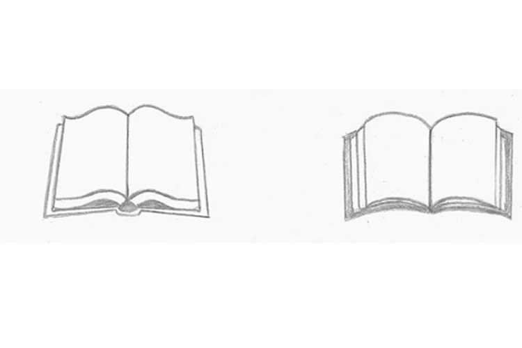 Рисунок раскрытой книги карандашом