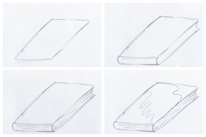 ![Поэтапное рисование книжки]()