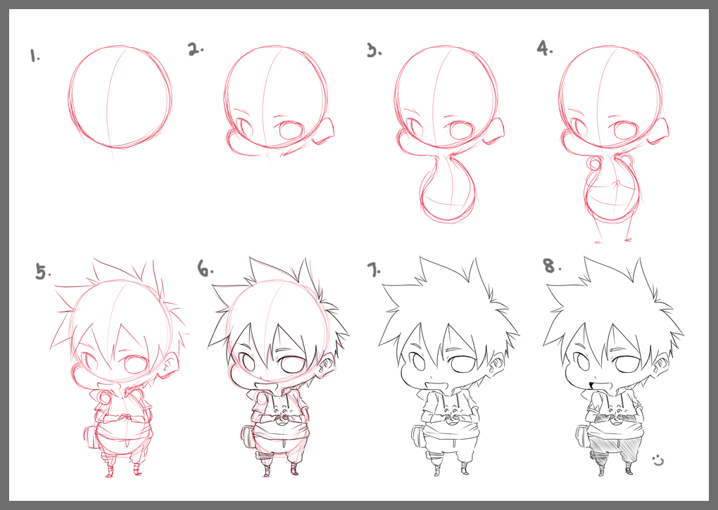 ![Поэтапный рисунок Чиби]()