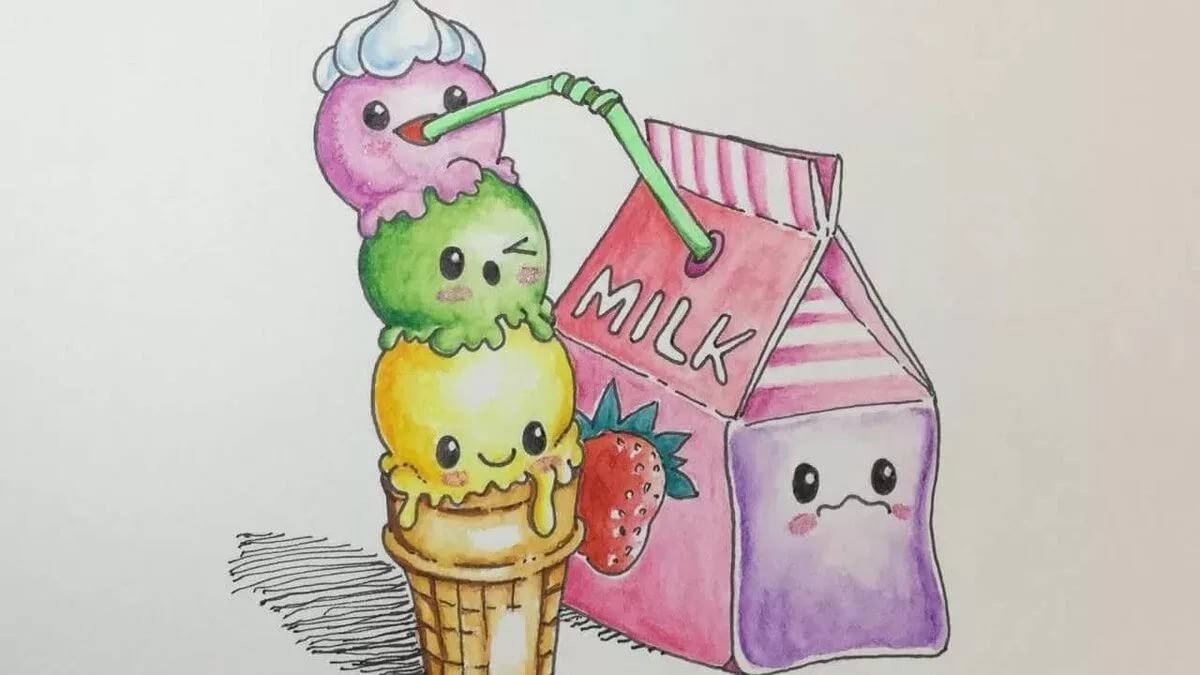 ![Легкие кавайные рисунки для срисовки]()