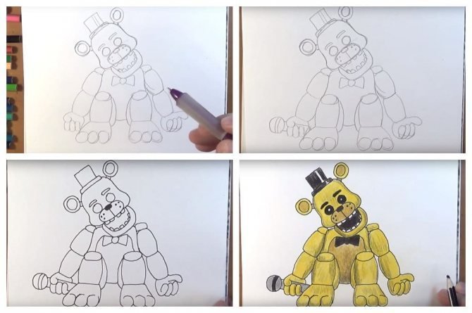 ![Поэтапный рисунок Фредди]()