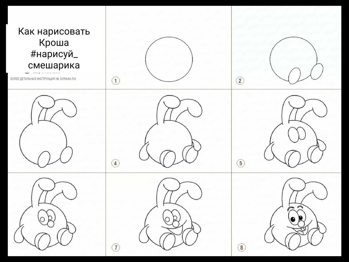![Нарисовать Кроша из смешариков поэтапно карандашом для начинающих]()