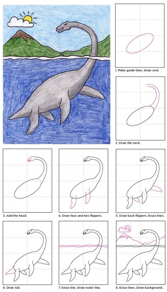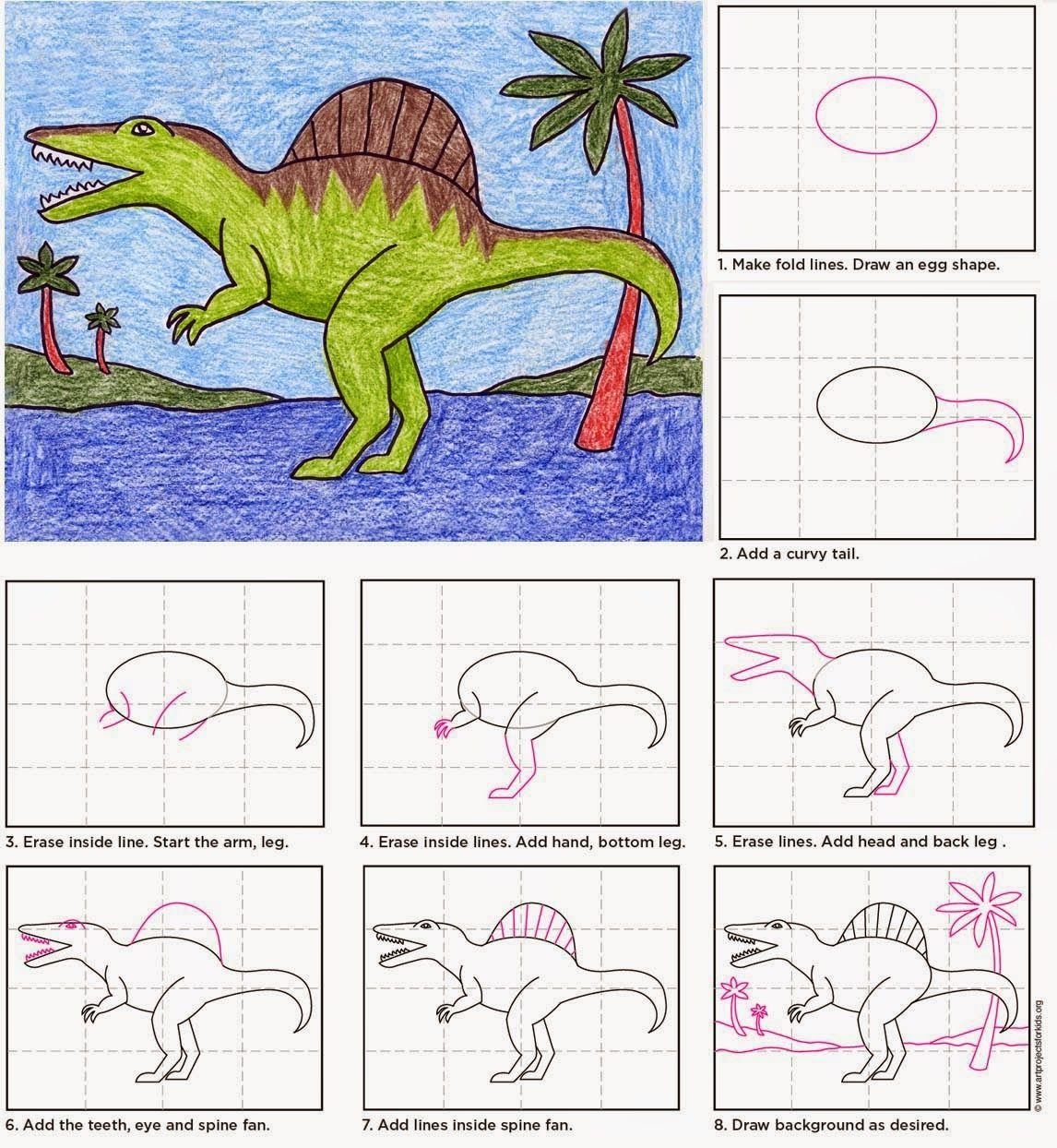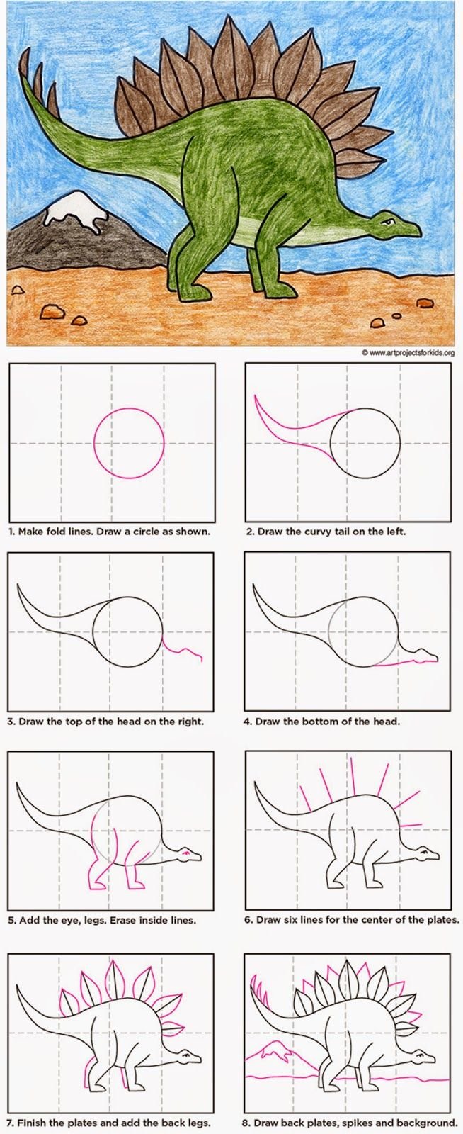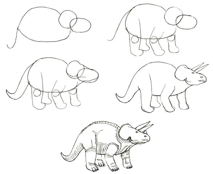 ![Легкие рисунки карандашом динозаврики (44 фото)]()