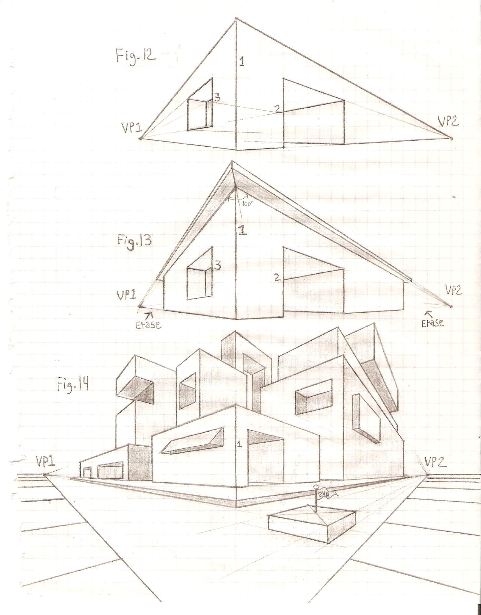 ![Дом снизу карандашом перспектива поэтапно]()