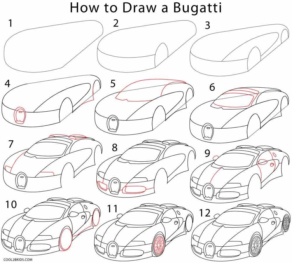 ![Бугатти Вейрон рисунок карандашом поэтапно]()