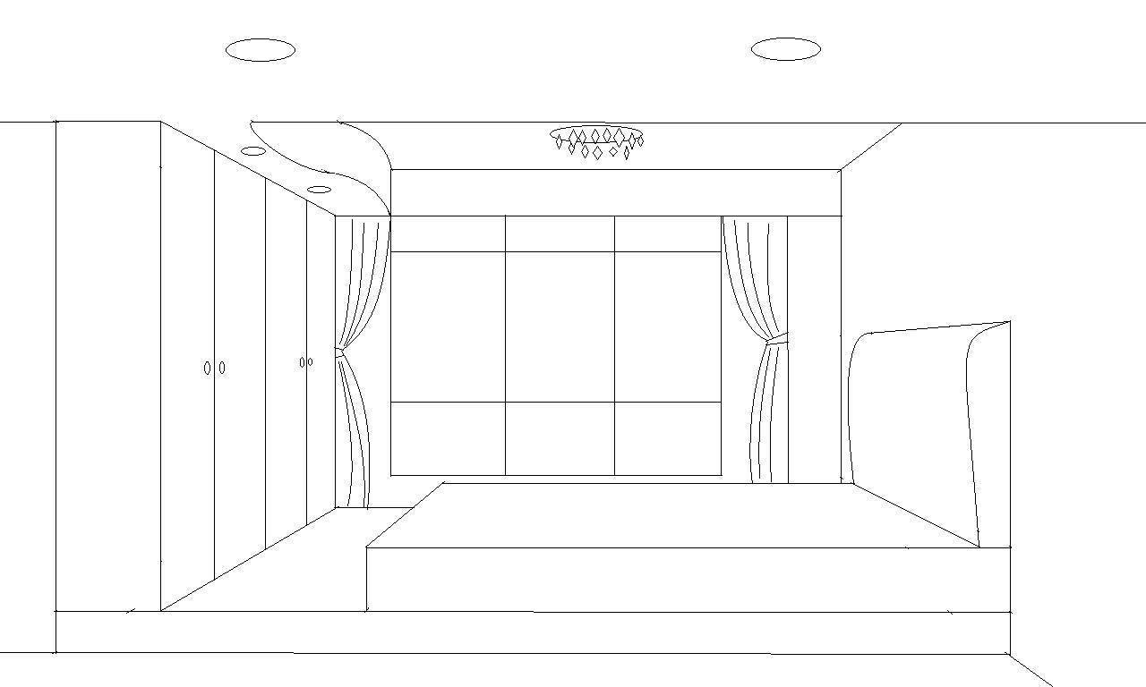 ![Интерьер комнаты чертеж сбоку]()