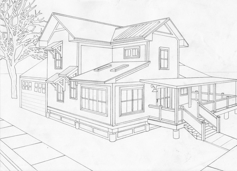 Дом снизу карандашом перспектива поэтапно