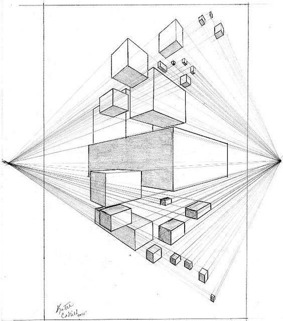 ![Перспектива с двумя точками схода рисунок]()