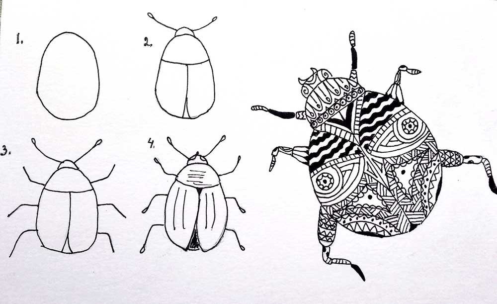 Поэтапный рисунок жука