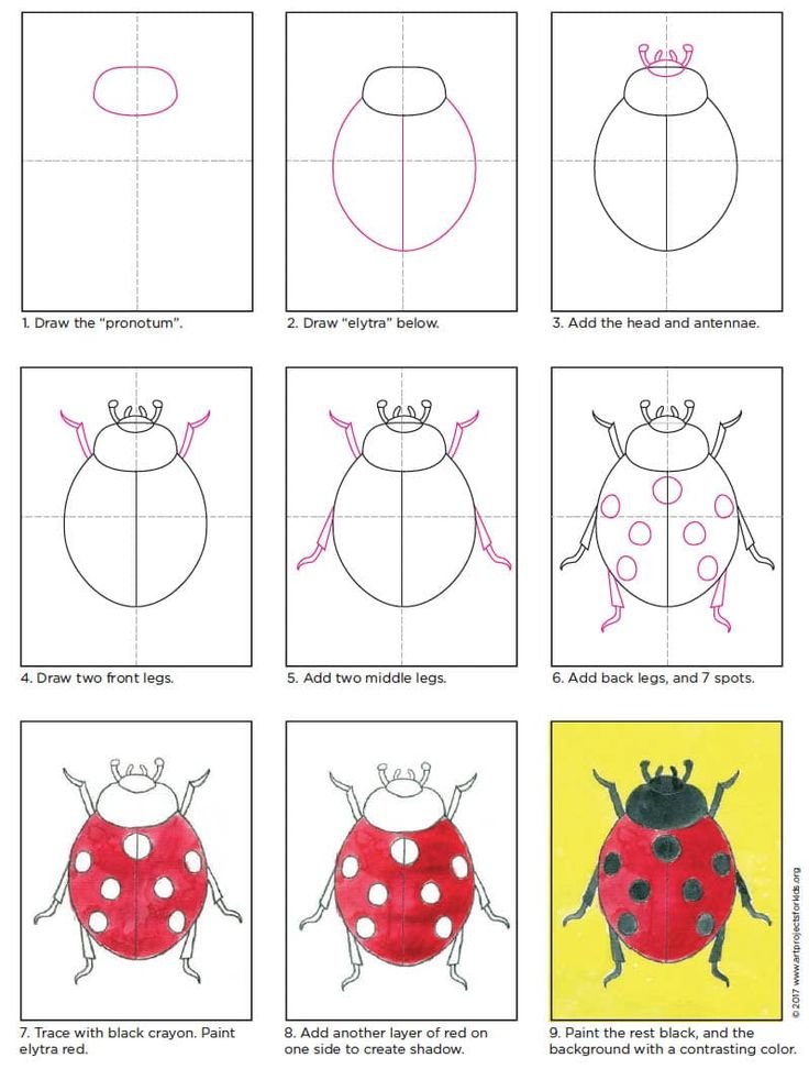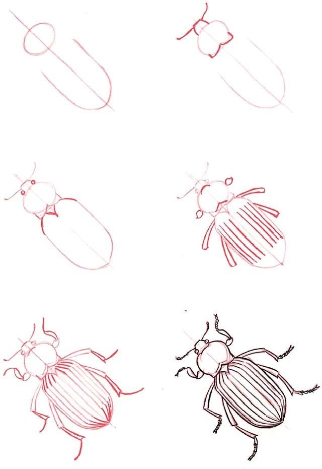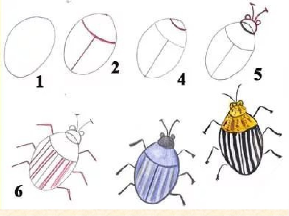 ![Поэтапный рисунок жука]()