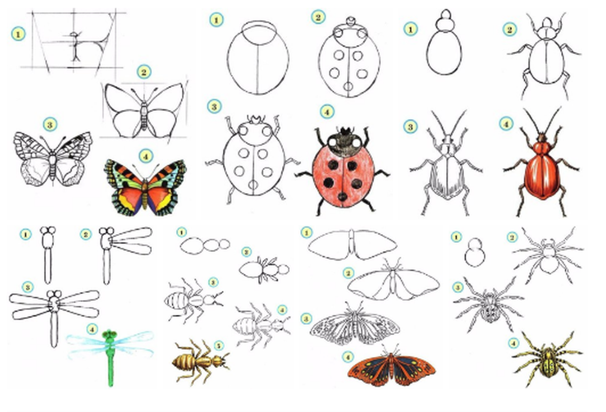 Поэтапное рисование насекомых