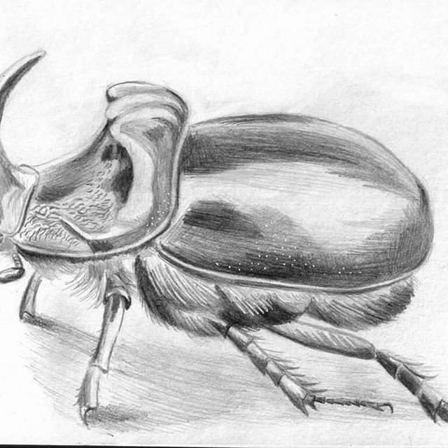 Жук носорог самка рисунок