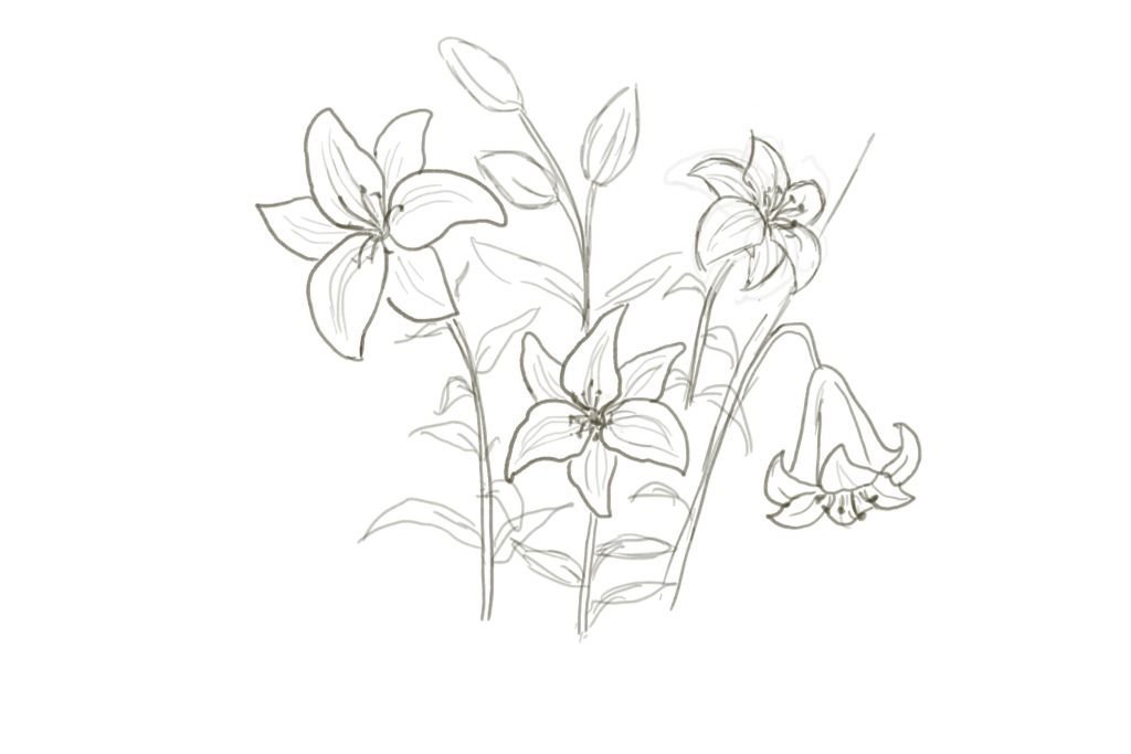 Лилии карандашом для срисовки