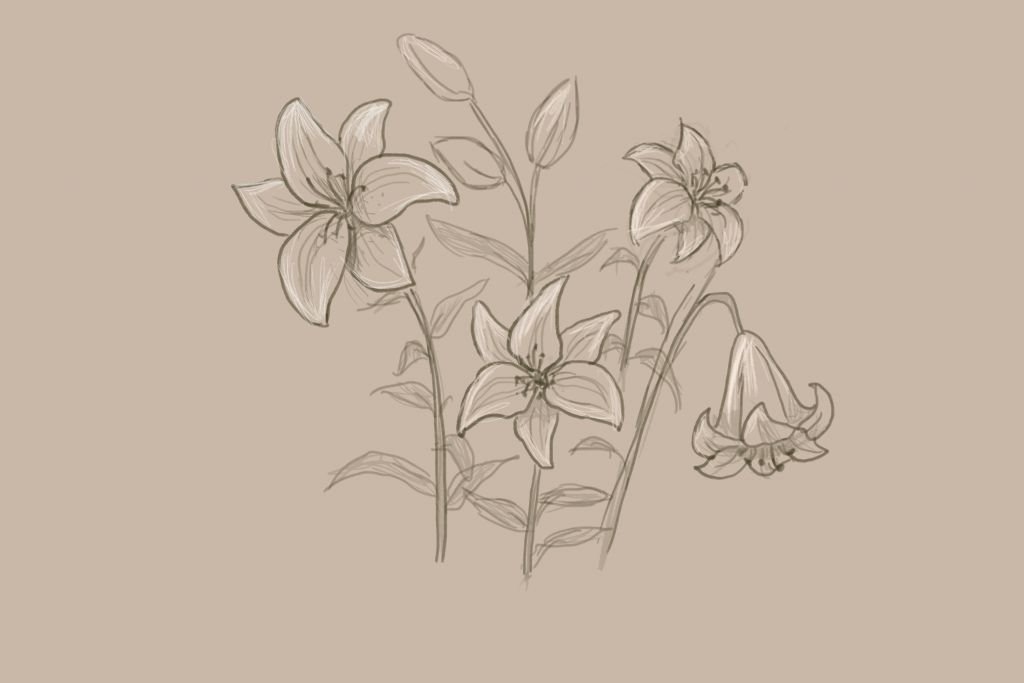Цветы лилии карандашом