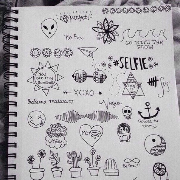 ![Рисунки для скетчбука черной ручкой легкие]()