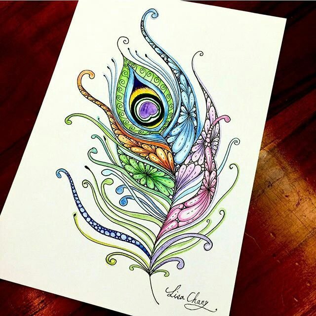 ![Перо Жар птицы Зентангл]()