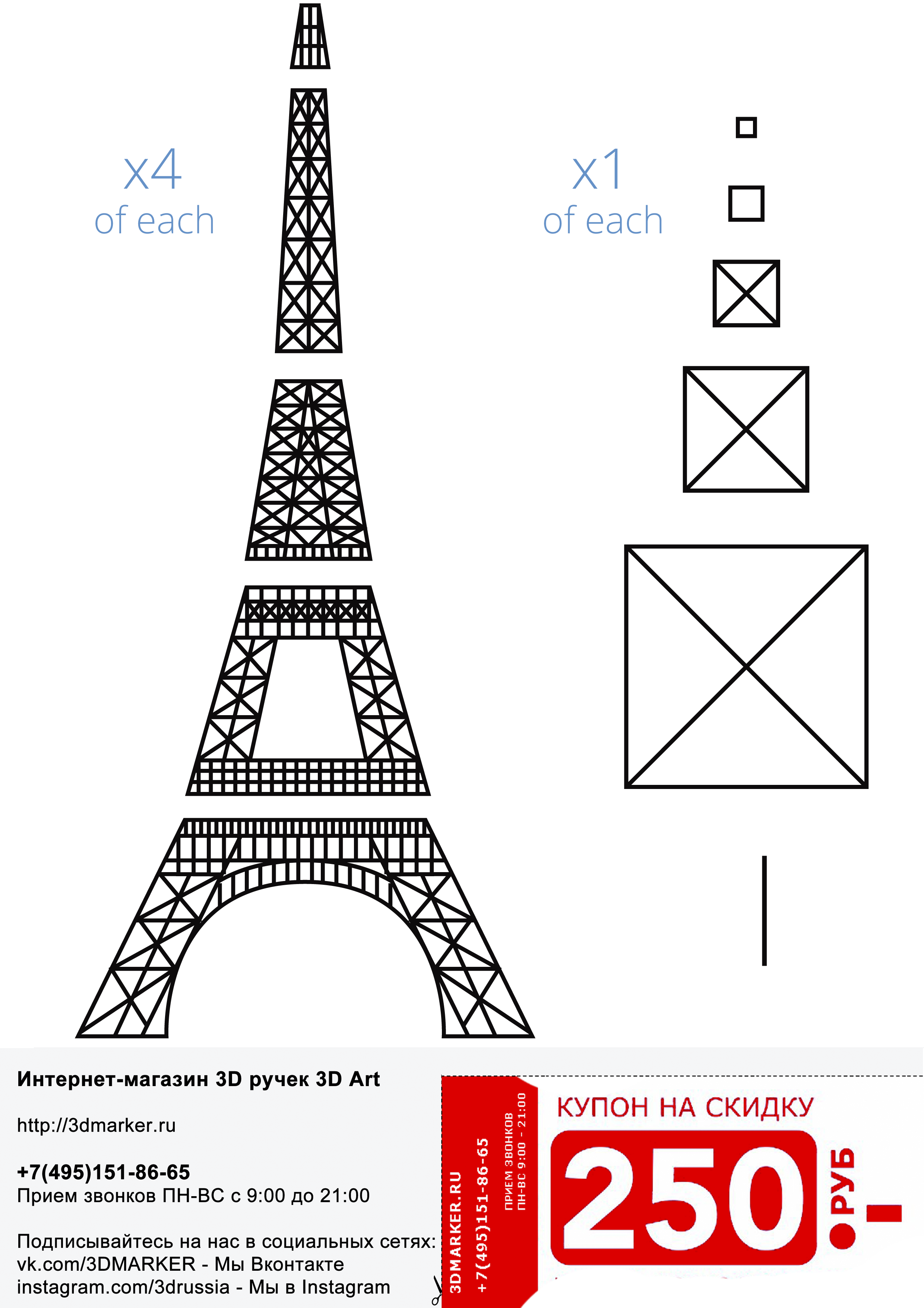 ![Трафарет Эйфелевой башни для 3д ручки]()