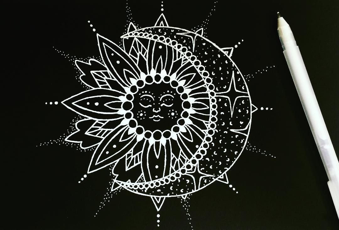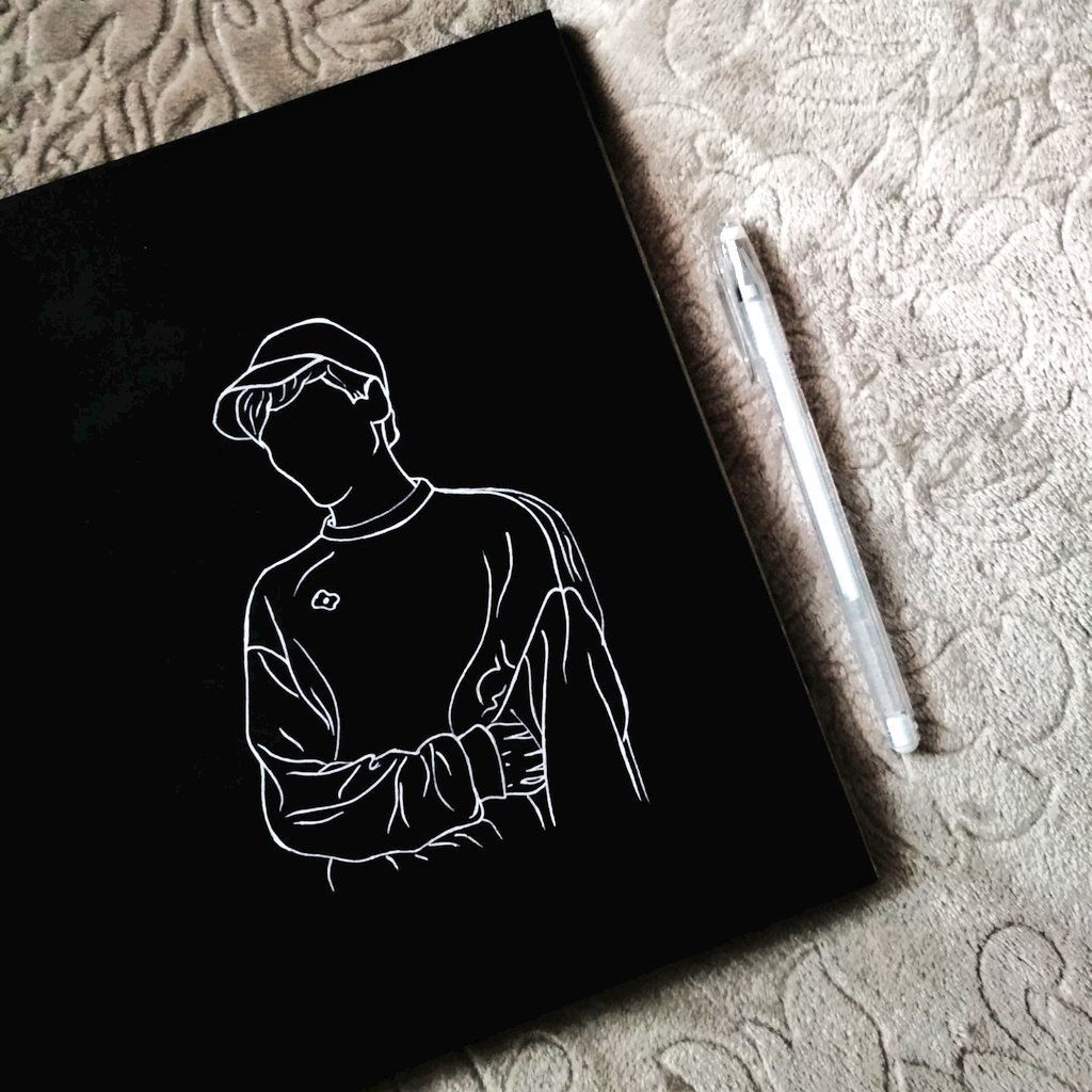 ![Рисунки в чёрном скетчбуке белой ручкой]()