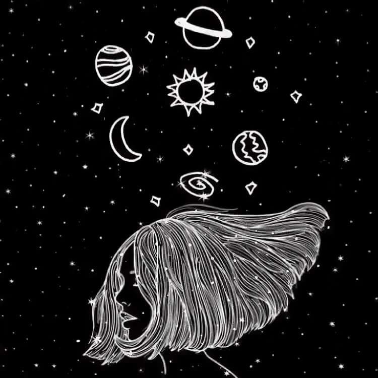 ![Космос рисунок черно белый]()