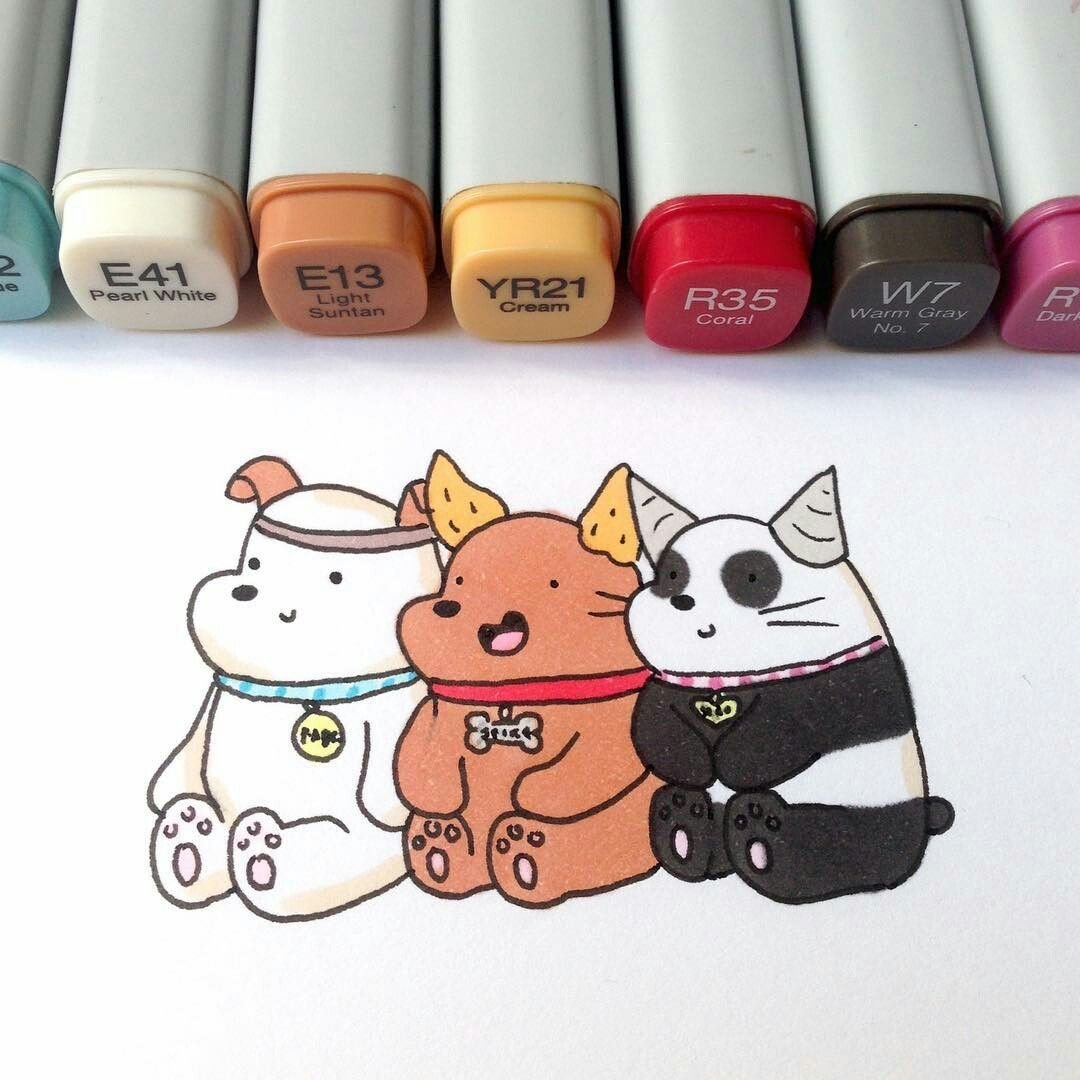 ![Рисунки маркерами для скетчинга легкие и милые]()