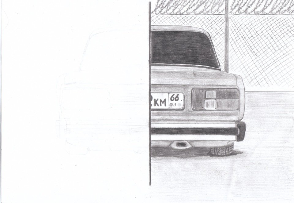 ![ВАЗ 2107 сзади карандашом]()