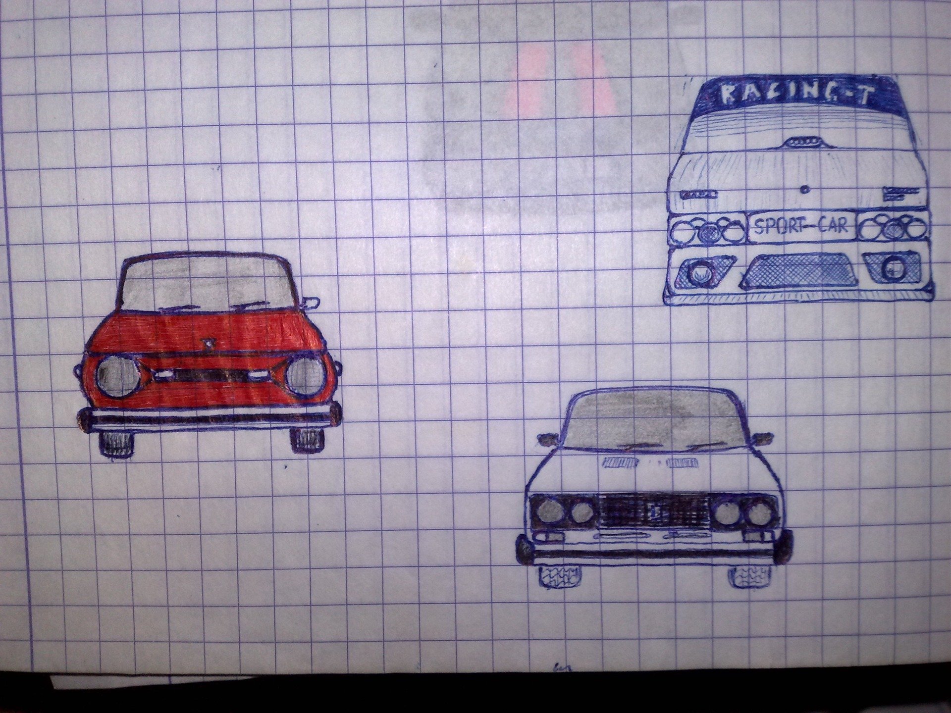 ![Рисунки машин в тетради]()